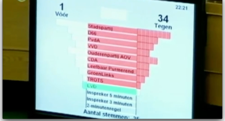 De uitslag van de stemming bij het amendement (beeld: gemeente Purmerend)