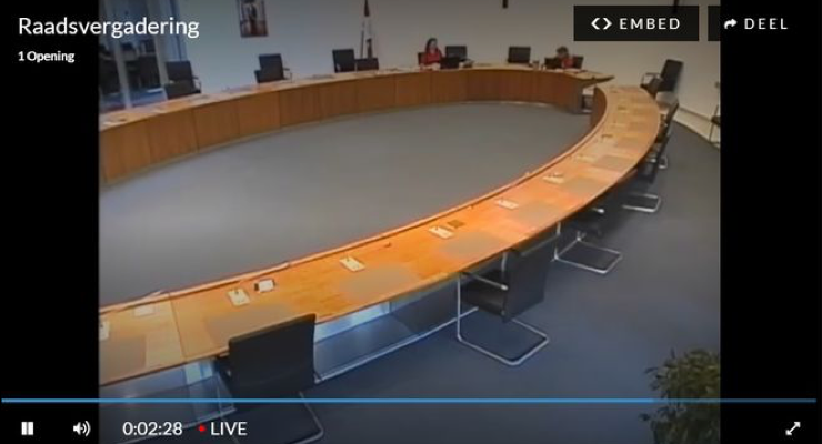 De raadzaal van Bernheze tijdens een virtuele vergadering
