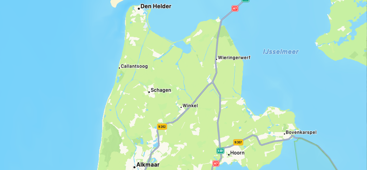 De kaart van Noord-Holland (beeld: Apple Maps)